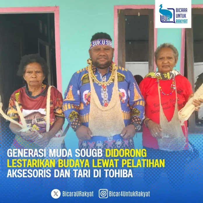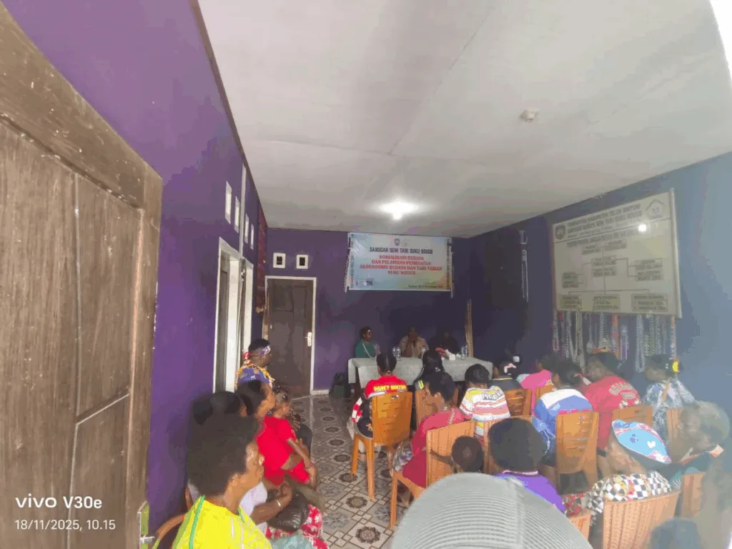 Bintuni, 20 November 2025 – Sanggar Suku Sougb bekerja sama dengan AMAHUTA menggelar Sosialisasi Budaya dan Pelatihan Pembuatan Aksesoris Budaya serta Tari-Tarian Tradisional Sougb. Kegiatan ini berlangsung di Sekretariat Sanggar Seni Suku Sougb Distrik Tohiba selama dua hari, sejak 18 hingga 19 November 2025.