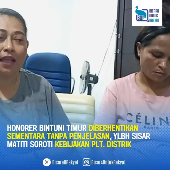 HomeKabar BintuniHonorer Bintuni Timur Diberhentikan Sementara Tanpa Penjelasan, YLBH Sisar Matiti Soroti Kebijakan...