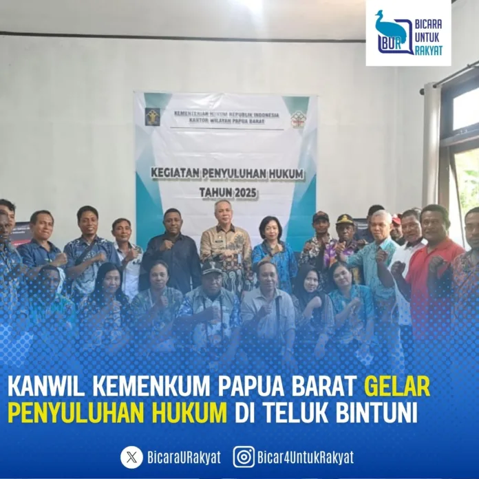Teluk Bintuni – Kantor Wilayah Kementerian Hukum dan HAM (Kanwil Kemenkum) Papua Barat menggelar kegiatan penyuluhan hukum di Kabupaten Teluk Bintuni, Kamis (22/5/2025). Kegiatan ini diikuti oleh 37 peserta yang berasal dari berbagai distrik, kelurahan, desa, dan kampung di wilayah tersebut.