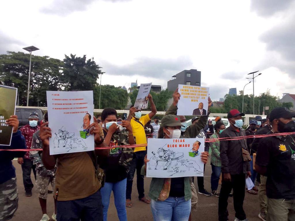 Front Mahasiswa Papua Sejawa & Bali Tolak Blok Wabu yang melakukan aksi di depan Gedung DPR-RI, pada Rabu (09/02).