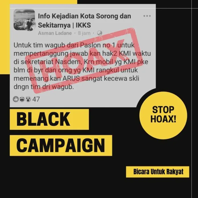 Penggunaan strategi kampanye hitam seperti ini sangat tidak etis dan mencerminkan kualitas yang tidak profesional. Masyarakat Papua Barat Daya layak mendapatkan pemimpin yang fokus pada program kerja dan kemajuan daerah, bukan sekadar yang sibuk memainkan narasi negatif tanpa bukti. Politik seharusnya menjadi medan untuk beradu gagasan dan ide, bukan untuk saling menjatuhkan melalui berita bohong atau fitnah. Fridkin dan Kenney (2004) dalam jurnal American Politics Research menemukan bahwa pesan-pesan negatif seperti ini dapat menurunkan tingkat partisipasi pemilih karena hilangnya kepercayaan terhadap proses politik.
