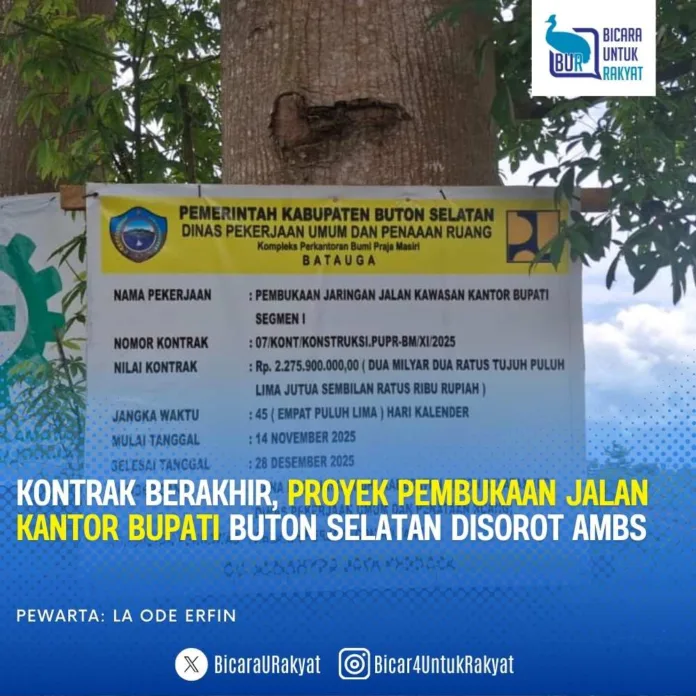HomeKabar BintuniKontrak Berakhir, Proyek Pembukaan Jalan Kantor Bupati Buton Selatan Disorot AMBS