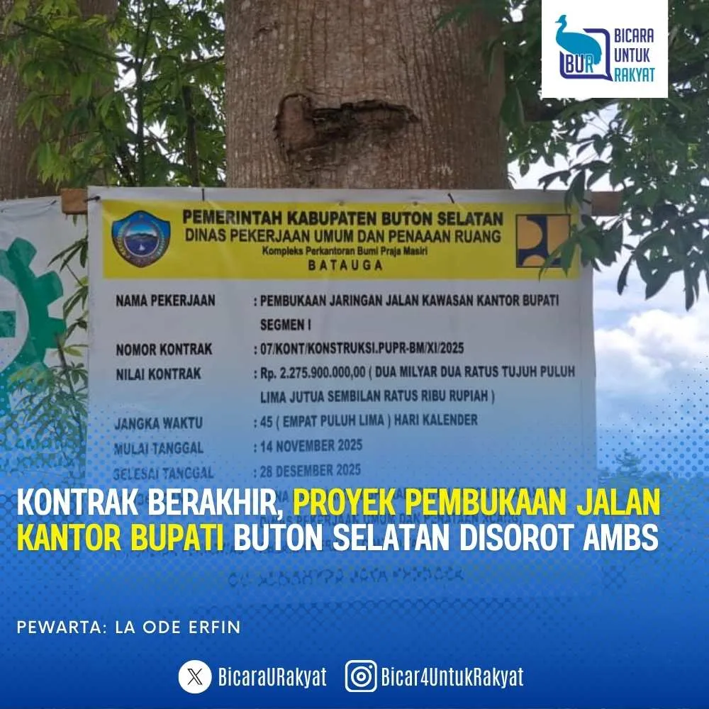 Buton Selatan, 28 Desember 2025 — Aliansi Mahasiswa Buton Selatan (AMBS) menyoroti pelaksanaan proyek Pembukaan Jaringan Jalan Kantor Bupati Buton Selatan yang dinilai mengalami keterlambatan signifikan meski masa kontraknya telah berakhir.