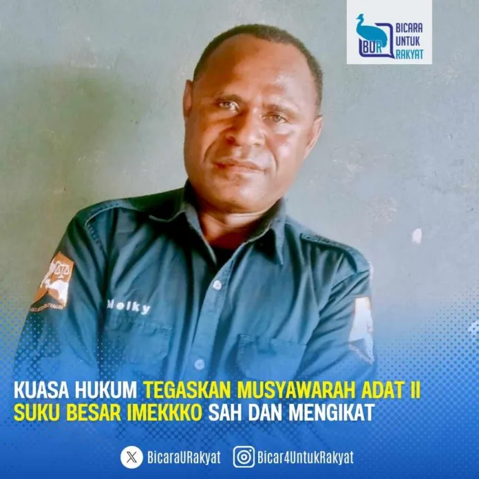 Sorong Selatan – Kuasa Hukum Kepala Suku Besar Imekkko, Melkianus Indouw, S.H., menegaskan bahwa pelaksanaan Musyawarah Adat II Suku Besar Imekkko yang berlangsung pada 26–29 November 2025 di Distrik Inawatan, Kabupaten Sorong Selatan, adalah sah secara adat maupun hukum. Ia menyebut tidak ada satu pun fakta hukum yang membuktikan adanya pelanggaran dalam proses musyawarah tersebut.
