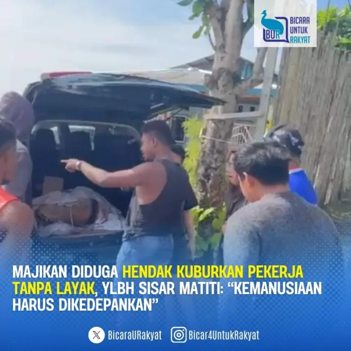 Direktur Penanganan Perkara YLBH Sisar Matiti, Otniel Lukas Mofu, S.H., mengecam tindakan majikan korban yang dianggap tidak mengedepankan nilai-nilai kemanusiaan dalam memperlakukan jenazah pekerjanya.