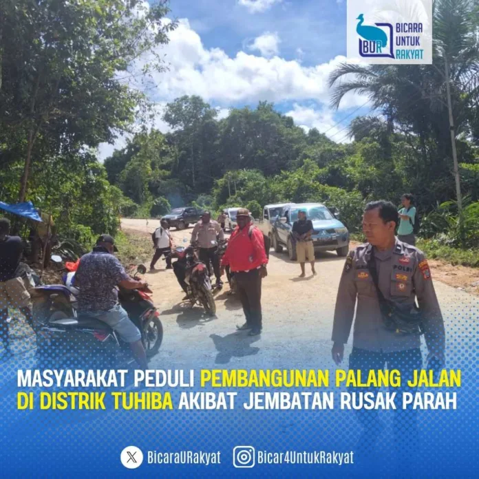Masyarakat Peduli Pembangunan Palang Jalan di Distrik Tuhiba Akibat Jembatan Rusak Parah