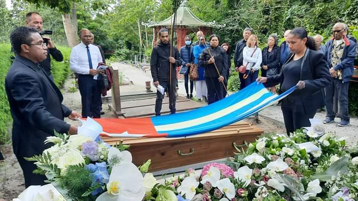 Sebuah keluarga pengungsi Papua Barat berduka di makam Seth Jafeth Rumkorem di Den Haag.