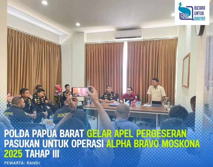 Manokwari – Kepolisian Daerah (Polda) Papua Barat melaksanakan apel pergeseran pasukan dalam rangka Operasi Alpha Bravo Moskona 2025 tahap ketiga, yang difokuskan pada pencarian dan evakuasi Iptu Tomi Samuel Marbun, mantan Kasat Reskrim Polres Teluk Bintuni yang hingga kini masih dinyatakan hilang.