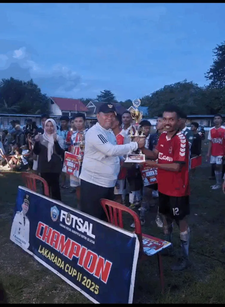 Buton Selatan — Vamos FC asal Kelurahan Majapahit memastikan gelar juara Turnamen Futsal Bupati Cup II Tahun 2025 setelah menundukkan Laompo FC dengan skor tipis 2–1 pada laga final yang berlangsung di Lapangan Lakarada, Kelurahan Lakambau, Kecamatan Batauga, Senin (15/12/2025).