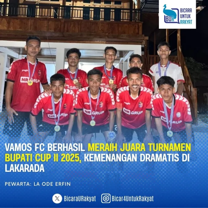 Buton Selatan — Vamos FC asal Kelurahan Majapahit memastikan gelar juara Turnamen Futsal Bupati Cup II Tahun 2025 setelah menundukkan Laompo FC dengan skor tipis 2–1 pada laga final yang berlangsung di Lapangan Lakarada, Kelurahan Lakambau, Kecamatan Batauga, Senin (15/12/2025).