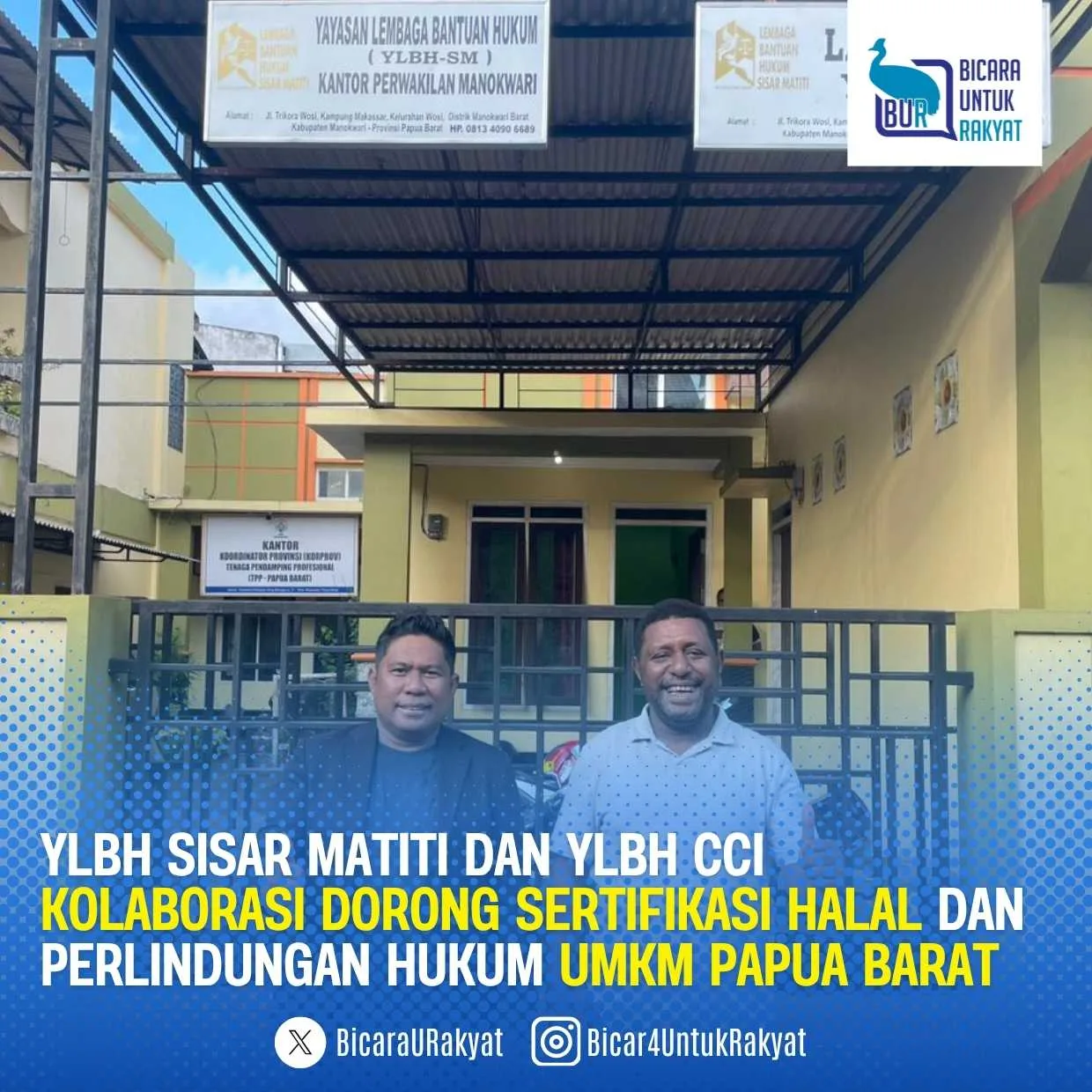 Manokwari, Papua Barat — Dua lembaga bantuan hukum, Yayasan Lembaga Bantuan Hukum (YLBH) Sisar Matiti dan Lembaga Bantuan Hukum Cenderawasih Celebes Indonesia (YLBH CCI), resmi menjalin kerja sama strategis dalam rangka memperkuat perlindungan hukum dan pemberdayaan masyarakat serta pelaku usaha mikro, kecil, dan menengah (UMKM) di Papua Barat.