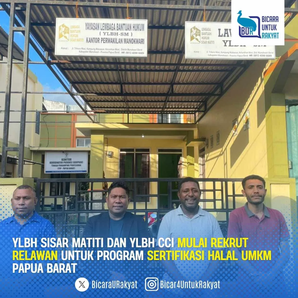 Manokwari, Papua Barat — Setelah resmi menjalin kerja sama strategis dalam bidang perlindungan hukum dan sertifikasi halal bagi pelaku usaha mikro, kecil, dan menengah (UMKM), dua lembaga bantuan hukum, YLBH Sisar Matiti dan YLBH Cenderawasih Celebes Indonesia (YLBH CCI), kini mulai melangkah ke tahap implementasi di lapangan dengan membuka perekrutan relawan untuk pendataan UMKM di Papua Barat.