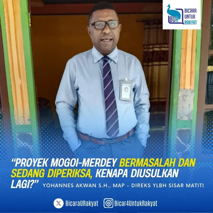 Direktur Eksekutif YLBH Sisar Matiti, Yohannes Akwan, S.H., M.A.P., mengungkapkan bahwa proyek pembangunan jalan Mogoi-Merdei yang dikerjakan pada tahun 2023 diketahui bermasalah dan dan sedang berproses di Pengadilan Negeri Manokwari. Meski demikian, Dinas Pekerjaan Umum dan Penataan Ruang (PUPR) Provinsi Papua Barat tetap mengusulkan kembali proyek lanjutan tersebut dalam DPA induk tahun anggaran 2024, dengan nilai mencapai Rp25.610.294.000.