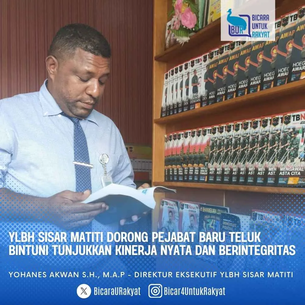 Teluk Bintuni – Direktur Eksekutif YLBH Sisar Matiti, Yohannes Akwan, mendorong para pejabat yang baru dilantik di lingkungan Pemerintah Kabupaten Teluk Bintuni untuk segera menunjukkan kinerja nyata, berintegritas, serta berorientasi pada pelayanan publik.