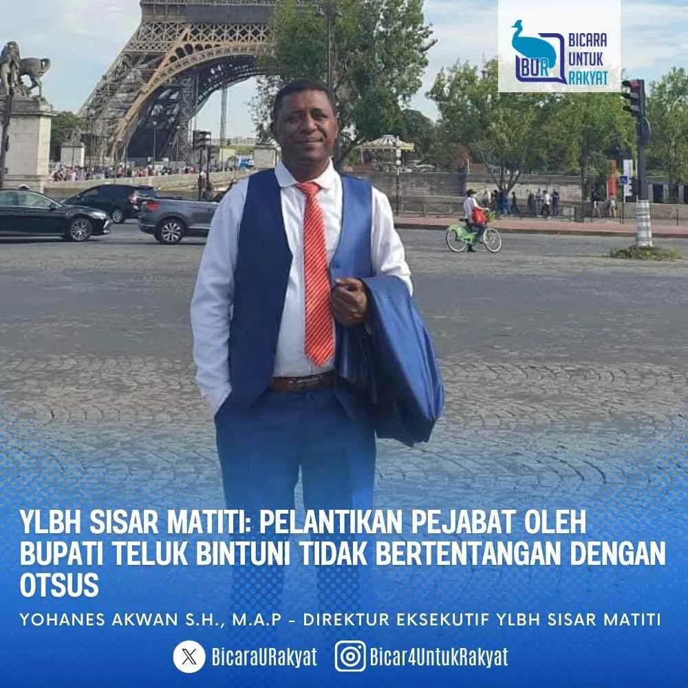 Teluk Bintuni – Yayasan Lembaga Bantuan Hukum (YLBH) Sisar Matiti menanggapi polemik yang berkembang di tengah masyarakat terkait pelantikan sejumlah pejabat struktural di lingkungan Pemerintah Kabupaten Teluk Bintuni oleh Bupati.